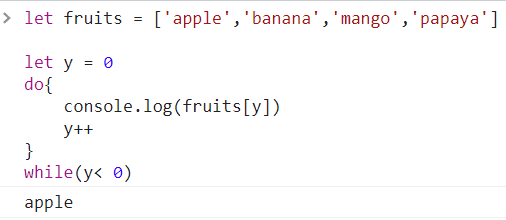 그럼에도 불구하고 저 코드를 실행시키면 do while 반복문이 실행되면서 첫 번째 아이템인 apple을 반환한다.